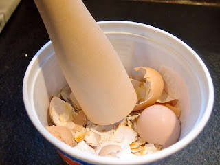 - Crushing eggshells up to use as a calcium supplement to feed back to the chickens.