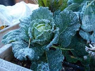 Kale needs no protection, and looks glorious bathed in crackling frost.