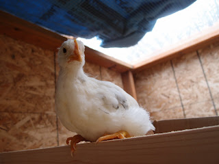 Hooks where, eventually, the big feeders and waterers will hang. For now we just moved their little brooder feeder and waterer into the coop.