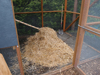 They won’t need the nesting boxes for awhile, but they are packed with straw.