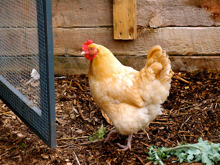 The day we decided that it was time for our rooster and Escape Chicken to meet the big frying pan in the sky (after all, Escape Chicken was now destroying all of our seedlings) Escape Chicken made a break for it. We came home and she was nowhere to be found. Two days later she was found in the same neighbor's yard, this time without any feathers.